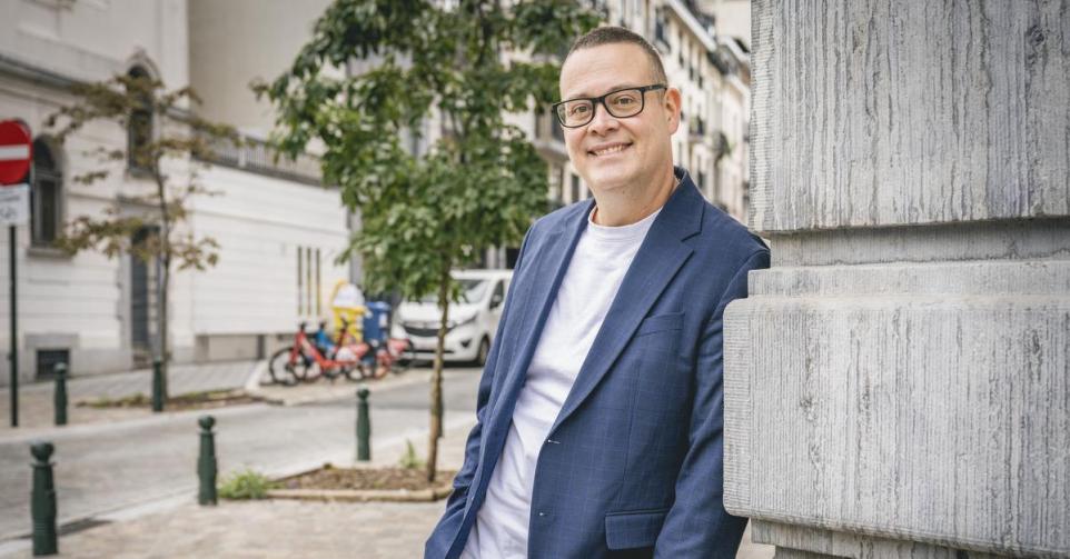“Dat is het enige wat ge mij niet moogt vragen.” Raoul Hedebouw schatert het uit als de fotograaf hem verzoekt enkele tellen te zwijgen. De 48-jarige Luikenaar, perfect tweetalig, is in zijn nopjes. Volgens de laatste peilingen is hij de populairste politicus van Brussel en Wallonië. Ook in Vlaanderen kan hij het podium ruiken. Dat het aftellen is naar dinsdag 14 oktober, het startschot van het politieke jaar, zegt hij. “Het wordt een héél speciale dag. In de voormiddag volle bak betogen op straat, in de namiddag naar het parlement voor de state of the union van de premier. Dat kan tellen qua symboliek. (lacht) Dat is wat de PVDA zo uniek maakt: de dingen die leven op straat, de klassenstrijd, brengen wij mee naar het parlement.”