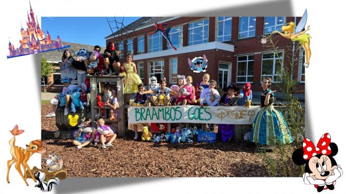 Wij zijn een dolenthousiaste klas van het vijfde leerjaar. Ons jaarthema dit jaar is 'ik+jij=wij'. We werken ten volle aan de binding van onze klasgroep. De making off van deze foto bracht ons heel dicht bij elkaar. We hebben samen gebrainstormd en materiaal verzameld. We brachten spullen mee voor elkaar en zorgden voor een overload aan Disneyspullen voor het maken van onze foto. In onze klas zitten er veel verschillende persoonlijkheden, ieder uniek op de eigen manier. Ondanks de vele verschillen was er één grote gelijkenis. Iets waar we ons allemaal in konden herkennen: de liefde voor de magie van Disney. Zowel de juf als alle leerlingen zijn grote Disneyfans. Een uitstap naar Disneyland zou de kers op de taart zijn voor onze groepsbinding.